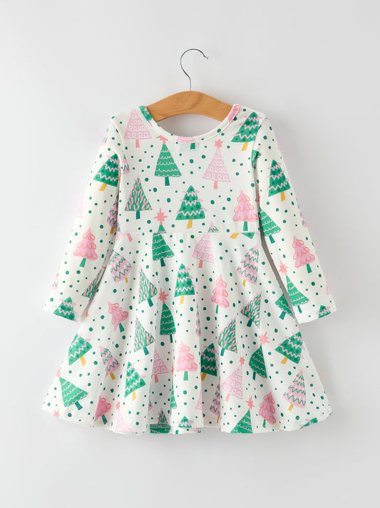 Cute Holiday Dress with Christmas Tree and Snow Prints