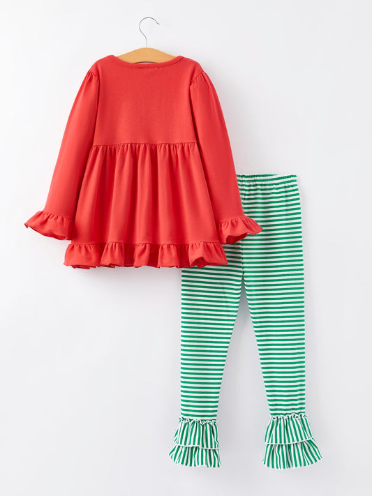 Christmas Tree Print Striped Girls Outfit Set