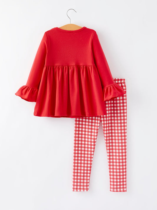 Christmas Smocking Embroidery Girls Plaid Outfit Set