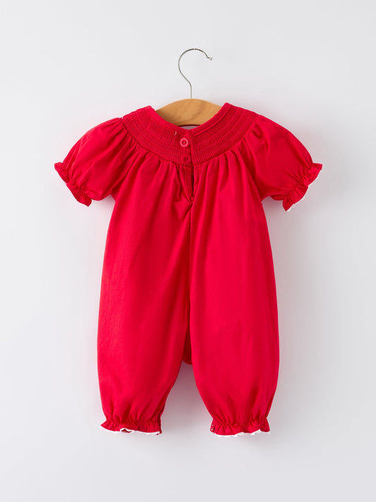 Red Christmas Baby Girls Romper: Nativity Embroidery