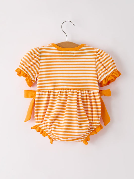 Halloween Striped Baby Girls Romper with Cat Smocking Embroidery – Perfect for Fall