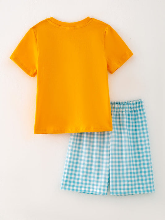 Halloween & Thanksgiving Pumpkin Smock Embroidered Plaid Boys 'Set