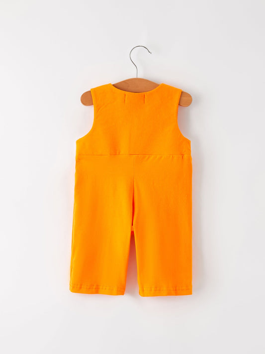Fall Halloween Orange Embroidery Smocking Baby Boys Romper