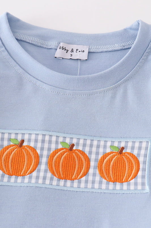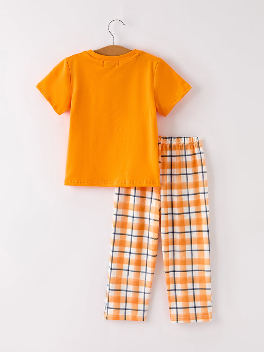 Fall Halloween Orange Embroidery Smocking Boys Set