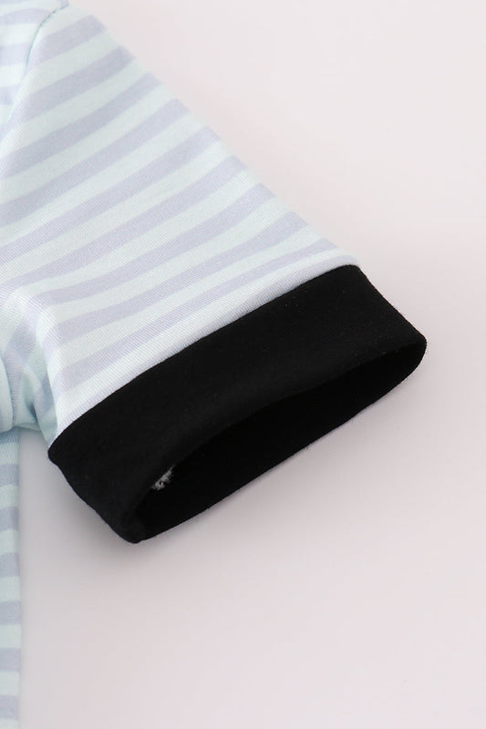 Fall Embroidered Romper for Baby Boys – Orange Checkered with Halloween Details