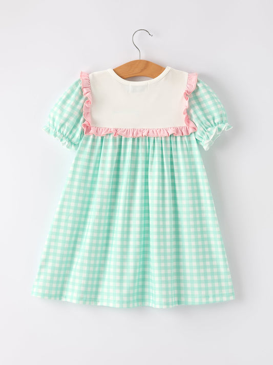 Thanksgiving Day Fall Pumpkin Flowers Embroidered Check Girls Dress