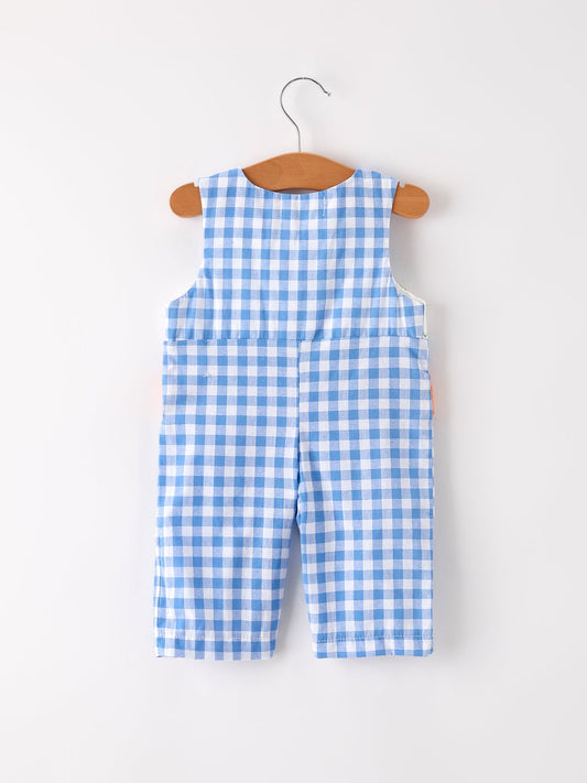 Fall Thanksgiving& Halloween Blue Pumpkin Smock Embroidery Baby Boy Romper