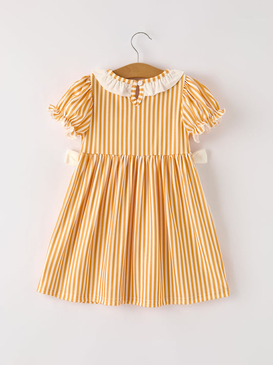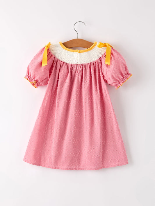 Fall Thanksgiving Turkey Leaf Embroidery Smocking Bow Girls Dress