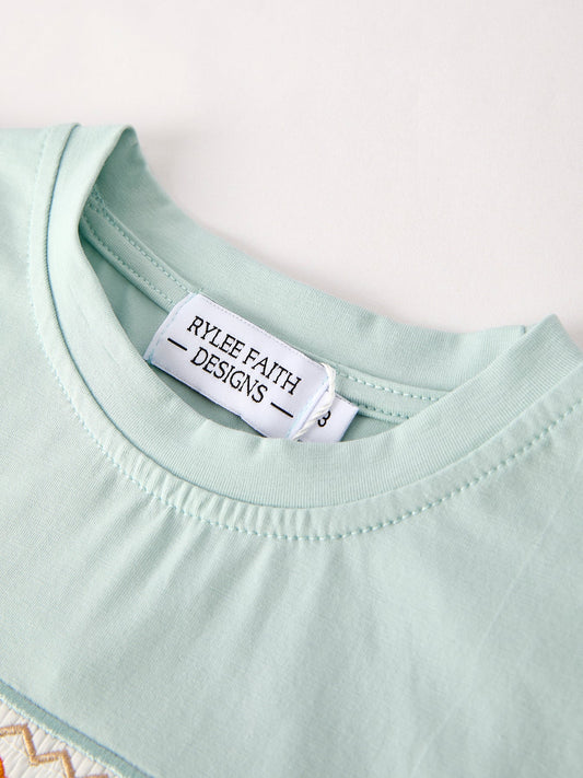 Fall Thanksgiving& Halloween Blue Pumpkin Smock Embroidery Baby Boy'Set