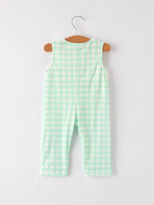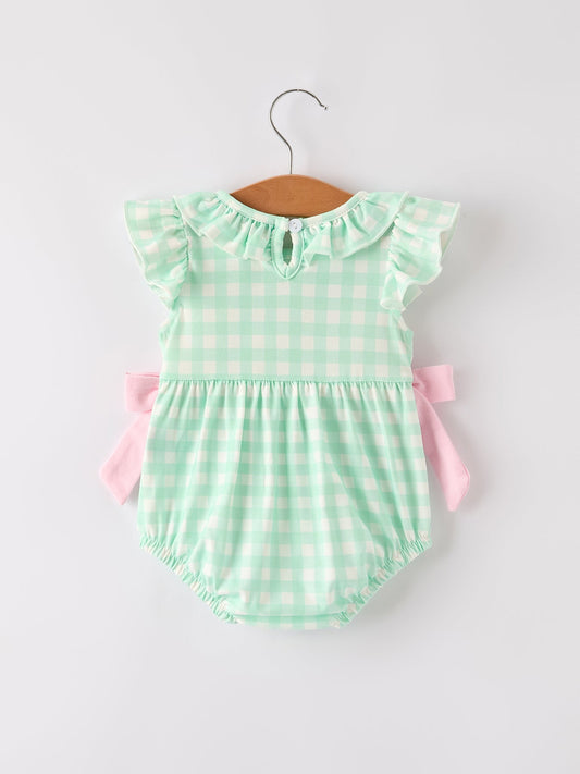 Fall Thanksgiving Green Chicken Smock Embroidered Plaid Baby Girls Romper