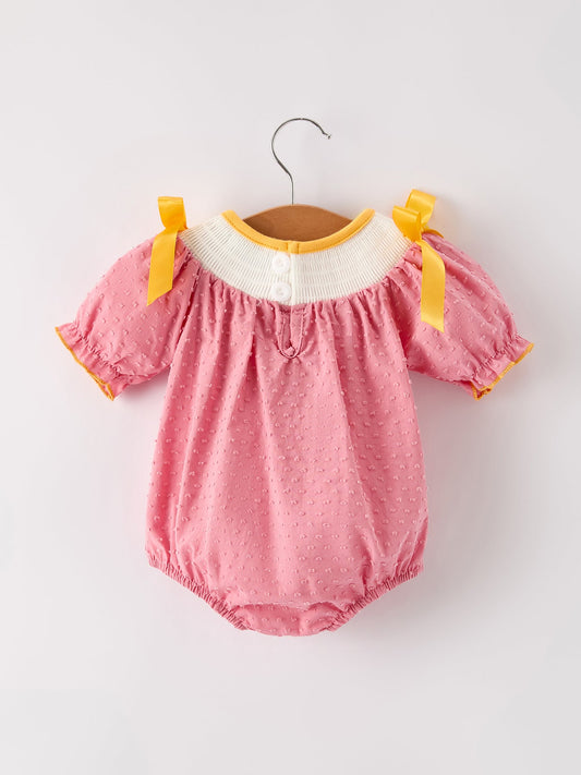 Fall Thanksgiving Turkey Leaf Embroidery Smocking Bow Baby Girls Romper