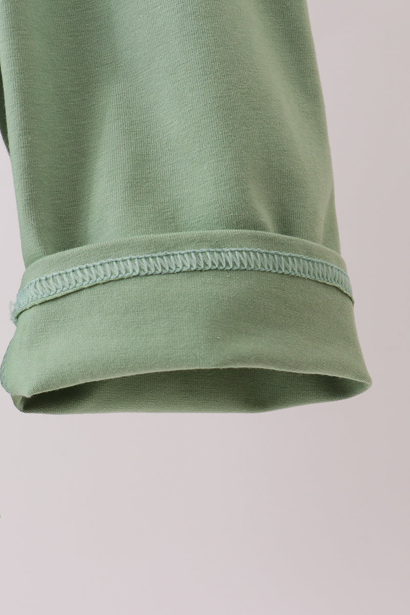 Green christmas reindeer applique plaid 2pc jumpsuit set