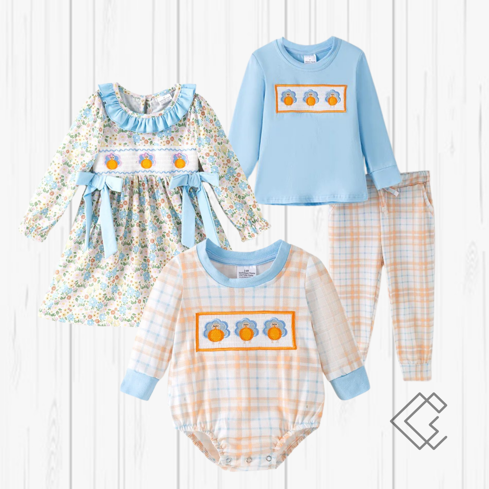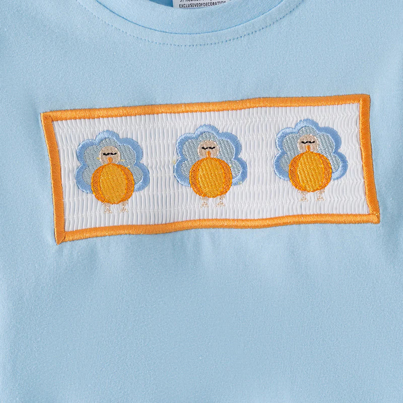 Get your little one ready for Thanksgiving with this playful Boys Thanksgiving Turkey Embroidery Smocked Outfit Set. Featuring charming turkey embroidery and classic smocked detailing, this outfit combines festive fun with comfortable wear. Perfect for family gatherings and holiday photos, it adds a cute and spirited touch to your child's celebration wardrobe.